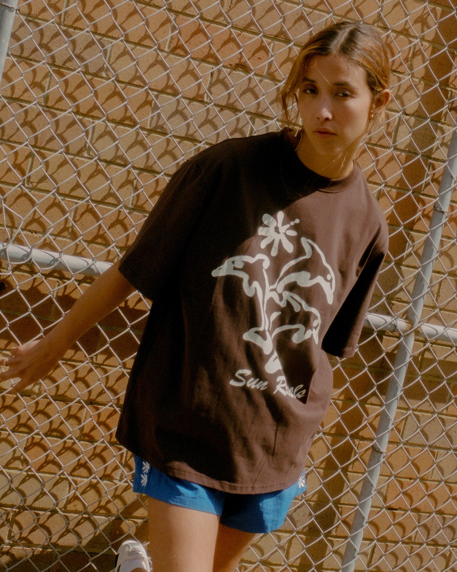 The Dolphin tee, reminiscent of a nostalgic holiday souvenir which sparks fond memories of fun, relaxation and restoration every time you wear it.